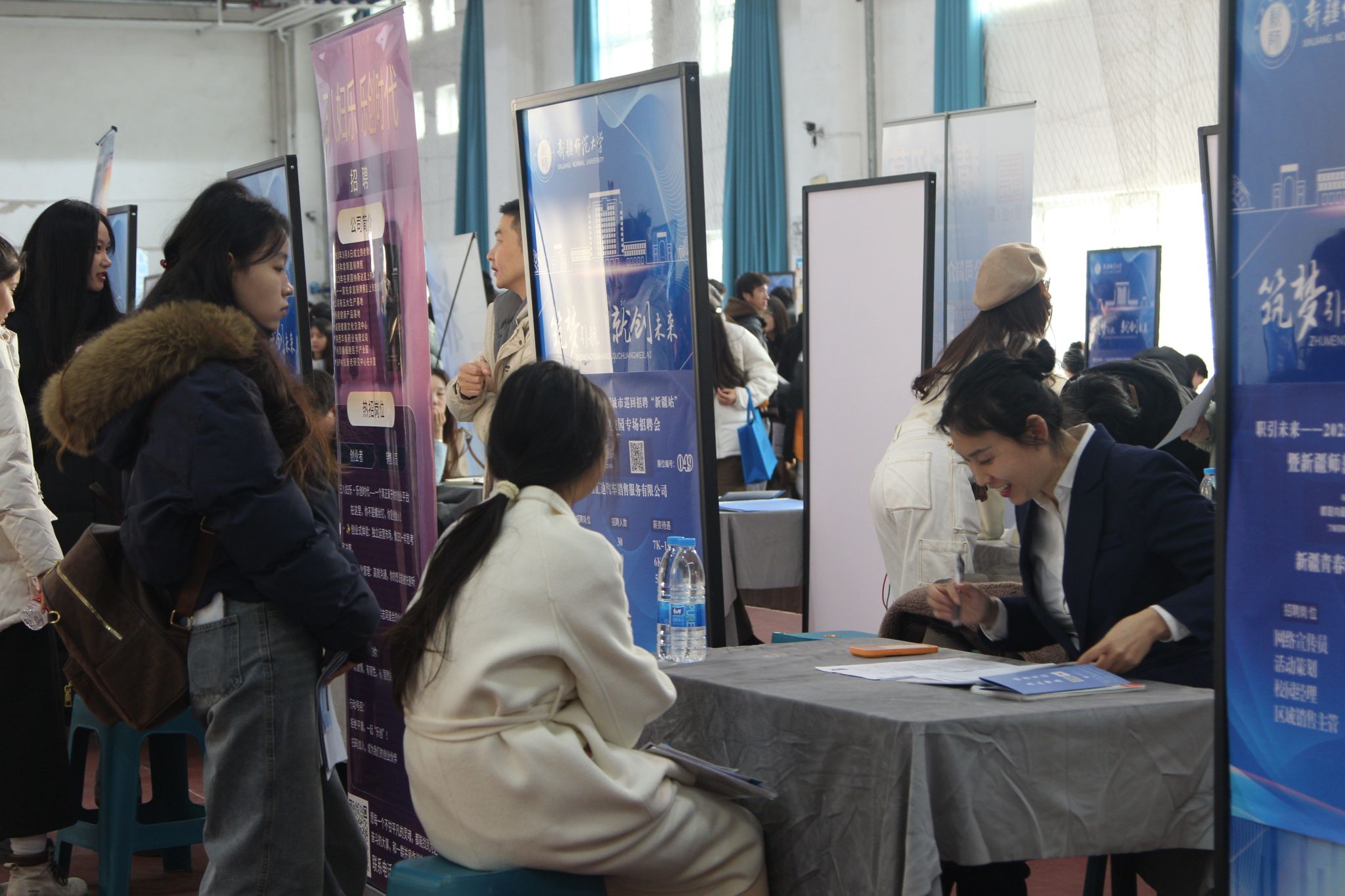 招聘会现场气氛热烈,各展位前挤满了手持简历的毕业生,大家围绕岗位要求、薪资待遇、职业发展空间等问题与企业招聘负责人深入交流。新疆爱缇恳生物科技有限公司招聘负责人表示:“我们此次根据企业发展需求带来了多个岗位,主要面向高校毕业生群体,校园专场招聘会能帮我们精准对接专业适配的求职者,现场面对面沟通不仅能更直观了解毕业生的综合能力,也能让求职者快速掌握岗位细节,双向提升招聘与求职效率。”